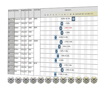 - The faceting style and parameters, which dictates length of ray bouncing inside the diamond before exiting from it. We have developed technology to estimate color grade of the planned solution in a rough diamond based on these information.