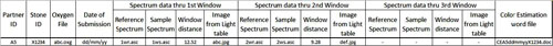 To reduce the file size, inclusions may be omitted from oxygen file. The oxygen file can have up to 20 different solutions for color analysis. These data has to be submitted online in above format in tabular form. Specific web space will be defined for every licensee.