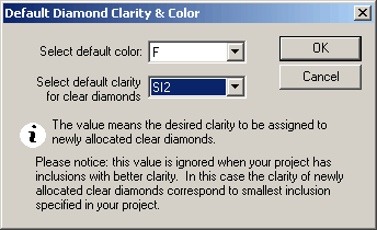 There is "Default diamond color" option (see menu "Settings/Default diamond clarity and color"). You may select the color that will be assigned to allocated diamonds.