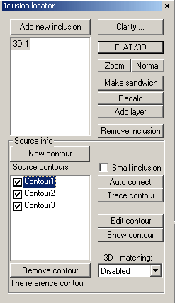 You may disable specific inclusion contour if you want to see the inclusion model created without consideration of that contour (like if you removed the contour). To disable or enable an inclusion contour click the corresponding checkbox in the contours list.