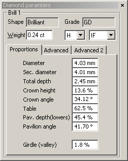 Colour and Clarity have been added into the Diamond parameters panel. You can change Colour and Clarity for each diamond. The new price for the diamond is calculated correspondently.