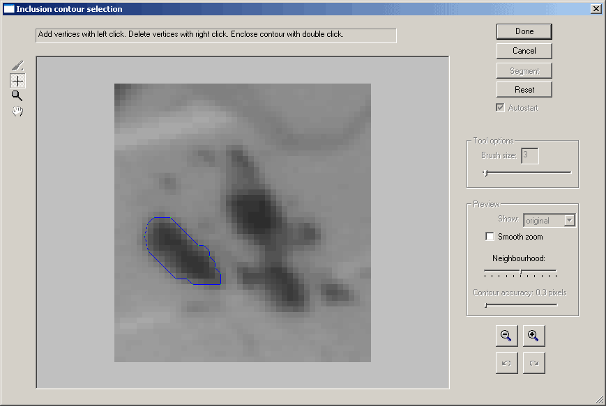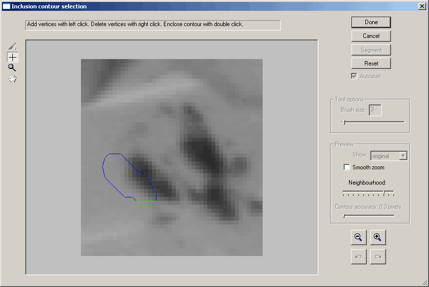 To create a flat inclusion you need to build 3D inclusion with at least 3 contours, then click "FLAT / 3D" button. With this button you can switch inclusion back into 3D-mode.