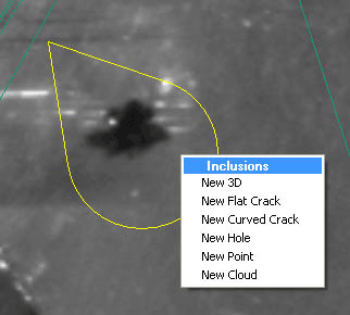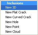 - Select type of inclusions: 3D, Flat Crack, Curved Crack, Hole, Point or Cloud