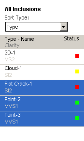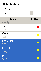 It is possible to sort inclusions by Type, Name, Status in allocation and Clarity.