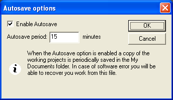 • Open panel AutoSave options from menu Settings / Autosave options…