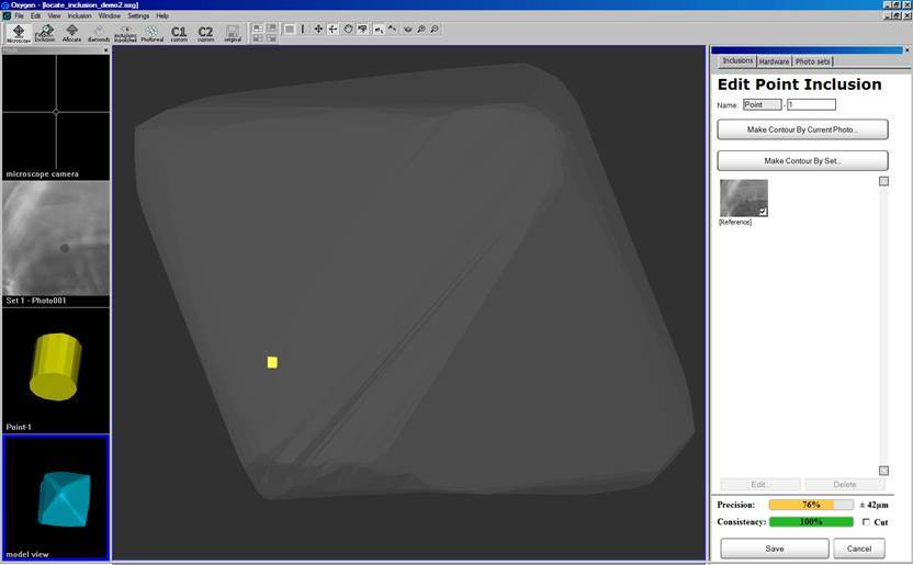 Model with inclusion via one photo, zoom 115x (M-Box MZ 16A)