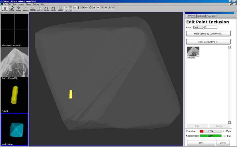 Model with inclusion via one photo created with different zoom