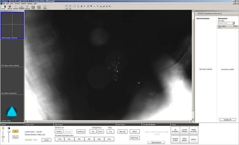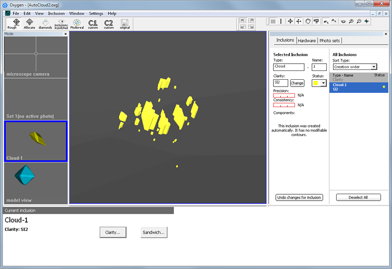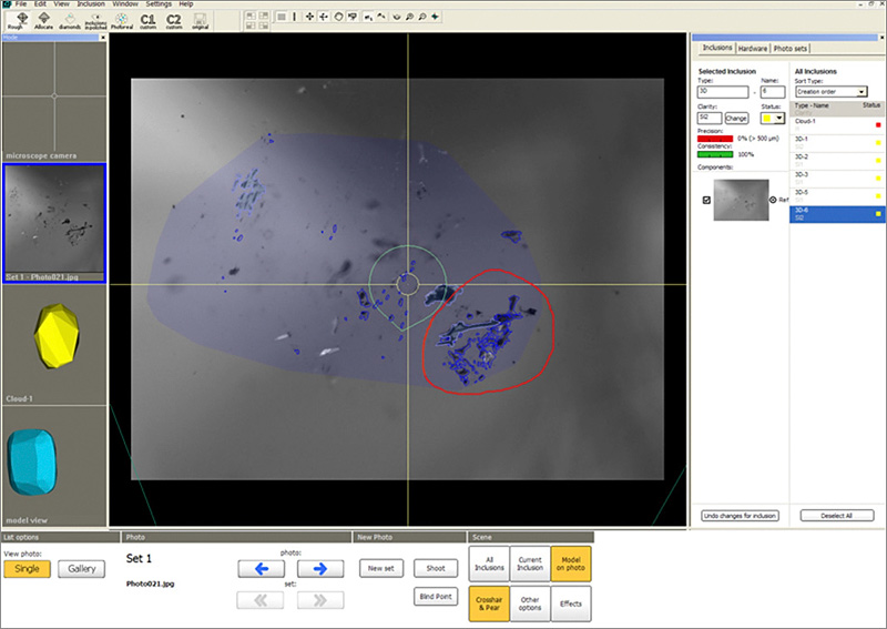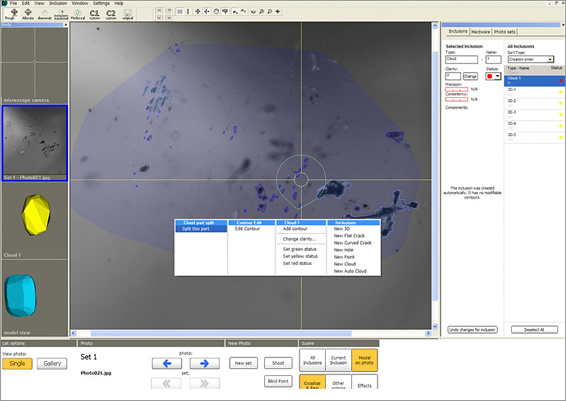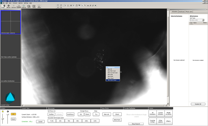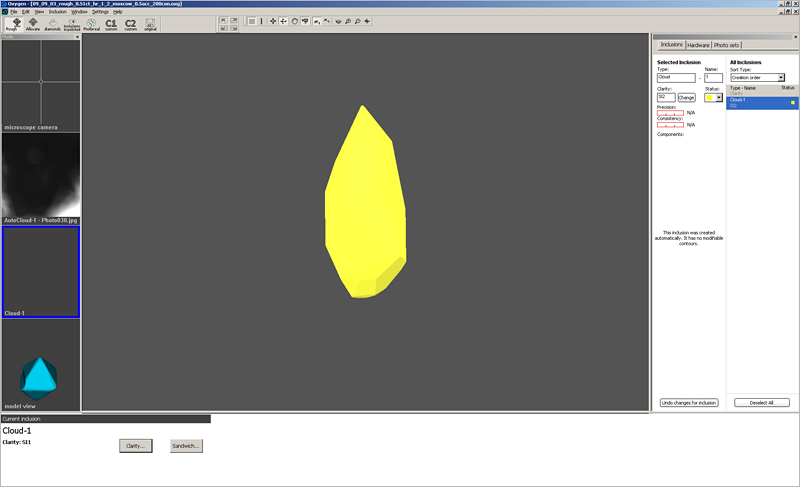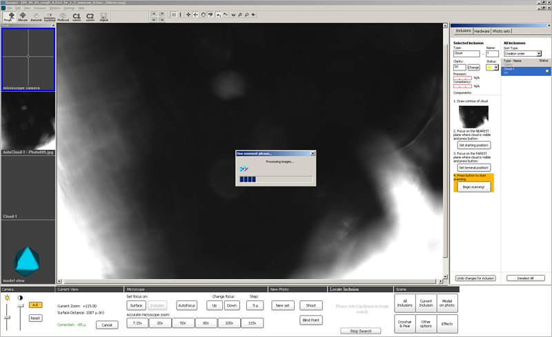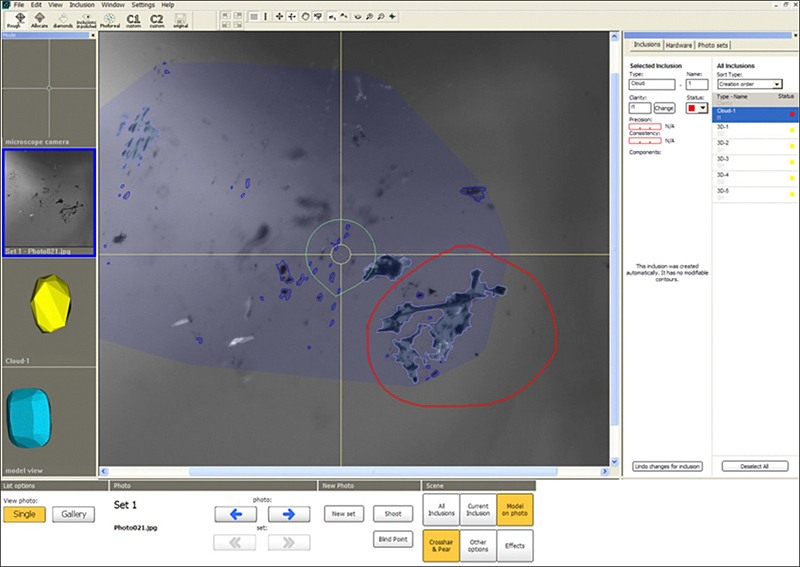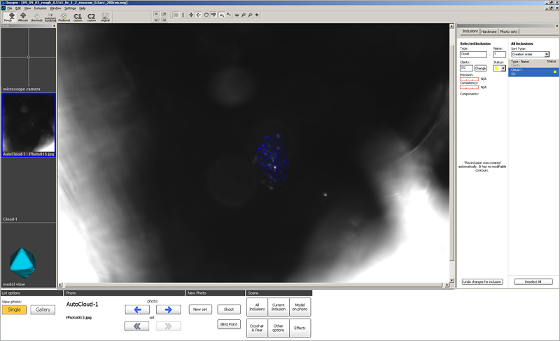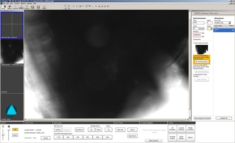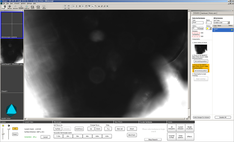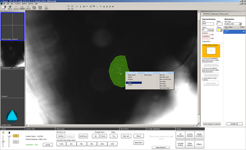 Note: Do not change the translation stage position and do not rotate the stone during step 3 and all the next steps. If you moved or rotated the stone during autocloud creation, an error message would be shown and you would have to enter all the components for autocloud once more. To do it, first click on the thumbnail of cloud contour on the right panel, then repeat the procedure of autocloud allocation from the first step.