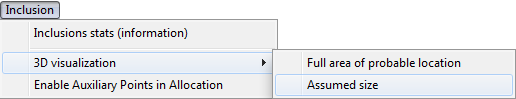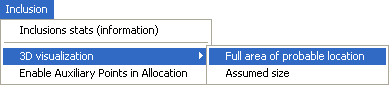 To see cloud in full area size mode select from menu Inclusion / 3D Visualization / Full area of probable location |