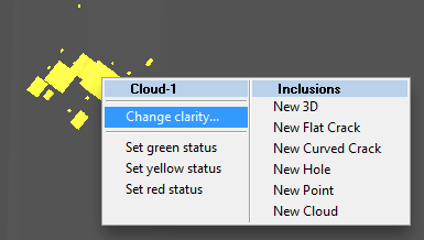 To see cloud in assumed size mode select from menu Inclusion / 3D Visualization / Assumed size |