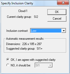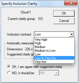 Added a contrast characteristic of inclusion which affects the Inclusion clarity assigned by automatic algorithms.