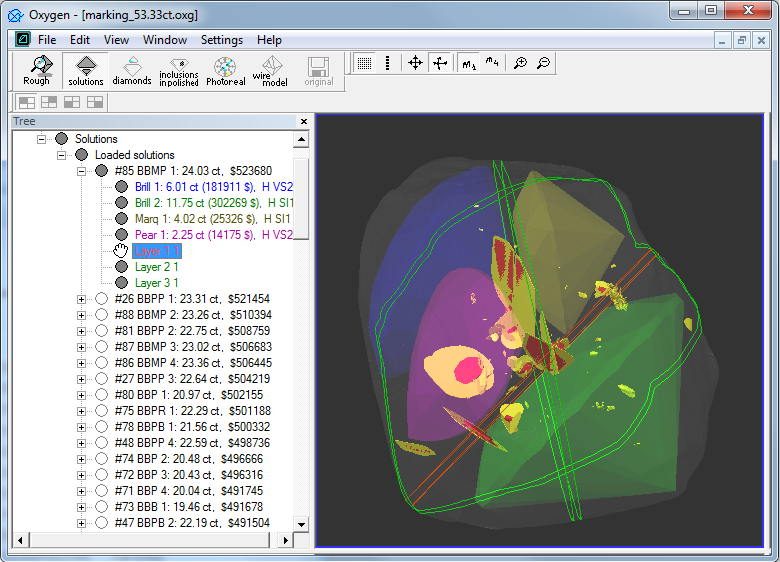 2. Solution layers are visible in the Solutions mode Now sawing layers are visible in the Solution mode. In the previous version it was visible in the Diamonds mode only. 3. Updated diamond clarity estimation algorithm Diamond clarity estimation algorithm updated with account of visual model and inclusion contrast. 4. Fixed bug Fixed bug: Cut not implemented message comes for a dll-cut under certain condition. Typically when .oxg file is open by double click or Open with.. in Windows Explorer. Download Oxygen Viewer Free Version