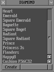 Select external cutting in this list and press button Create. Cutting will be appeared on the screen - as 3D model in the Scene panel or Scan polished diamond panel and in the list of objects in the panel of objects lower.