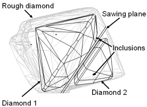 This is an example of allocation plan for this rough stone including allocation picture and dimensions/proportions table with cutting instructions. It can be more that one allocation plan. |