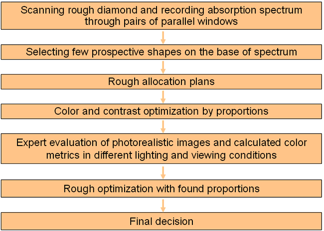 Initial data are collected with a rough diamond scanner and a spectrophotometer.