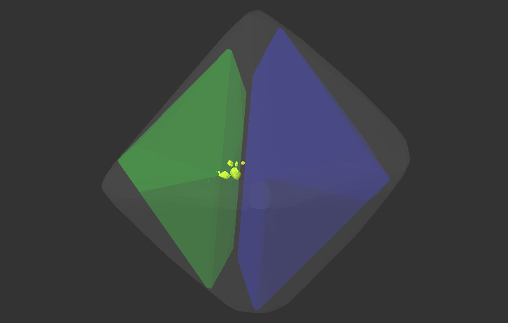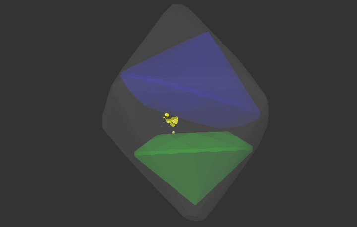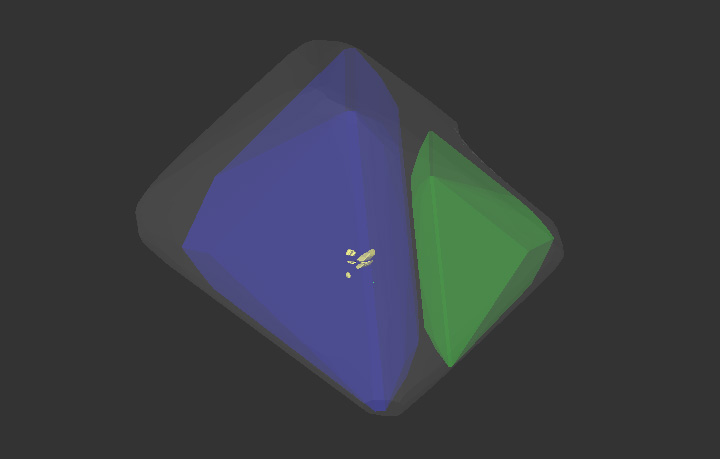 Hovewer the stone looks generaly almost as a whole regular octahedron crystal.