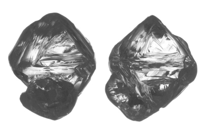 3q: 3rd quality. Single small defect in a central part, single interpenetrant ingrowth (embedded crystal), loupe clean cubes.