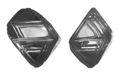 1q: 1st quality. Flat shaped octahedrons with minute surface features. Single etching surface line and near surface pinpoints allowed.